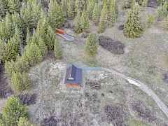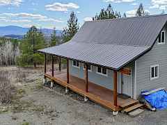 Imagine a sky full of mountain views from your wrap-around covered deck overlooking wide open pastures. Located at the end of the road and behind 2 gates, this newly constructed cabin is unfinished but the shell has everything you need to create your own mountain retreat -- steep metal roof, cedar timber posts, open A-frame design with loft, and big peak windows that pull in views of 49 Degrees North and the surrounding ranges. Electric is wired in for a generator and power is at the property line. The 22 acres runs from open meadow into mixed ponderosa, Douglas fir, and aspen draws, with timber company land off the back boundary and national forest beyond. Drilled well on site, but condition unknown. Shipping container included. Cisterns uphill of cabin for water storage.