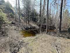 Fairly heavily timbered acreage with a creek. This property is made up of varied terrain with multiple building sites. A very rustic cabin sits perched towards the top of the property next to a pond. Huge views from the top and very private. Excellent hunting area with a mix of white tail and mule deer.