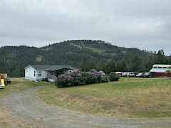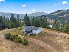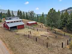 Welcome to this inviting 3 bed, 2 bath home set on 16 acres with sweeping lake, valley, and sunset views. Inside you'll find an open floor plan with two bedrooms and a full bath on one side, and a private primary suite with attached bath on the other. Enjoy cozy evenings by the wood stove, with the comfort of a furnace and community water system. Outside you will love the covered porch, a fenced 21x47ft garden featuring established raspberries, strawberries, blueberries, and rhubarb plus an apple, cherry, plum, and pear tree, as well as lilac bushes. The property also includes a charming red-and-white barn with attached corral, perfect for small animals, a chicken coop and a storage shed. Offering the peace and privacy of country living, this property is a true gem.