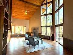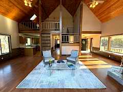 Large home near Kettle Falls and Lake Roosevelt. This 5 bed 3 bath home is tucked amongst the trees w/a prow-front to take in the view and the yard from the large windows and deck. There is a large living-room w/a 2 story vaulted ceiling, wood details, gas stove, a bay sitting-window and easy access kitchen. You will like the main-floor bed, bath and laundry but also enjoy that there is primary suite, bath and adjacent sitting-room on the upper floor w/an office or nursery near. The basement offers 2 more bedrooms, bathroom, family room and storage w/an outside exit. There is FA gas heat, A/C, city water, tile roof, wood siding, easy access and ample parking. There is a large garage/shop w/a wood stove, a back deck, hot tub, spk sys and fenced yard. The home is near the Marina and Park.