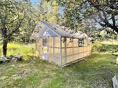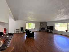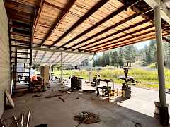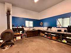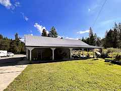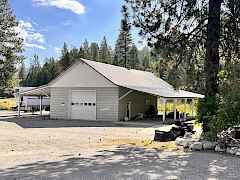 Immaculate, well kept home with a huge shop nestled back against the creek. This large two story home is well set up with a new, bright, open concept kitchen with French doors leading out to a huge deck overlooking the creek. Large family room has a propane fireplace, plenty of room & nice looking laminate flooring. Downstairs there is a huge rec room with a bar & wood stove. There are laundry hookups both upstairs & down. Attached 2 car garage as well as a huge, insulated 30'x40' shop with 20' lean to's on either side & huge covered lean to area off the back. There's no shortage of covered storage space. Asphalted circular driveway off of a state highway so....no dust!. Nice green house, lots of landscaping& room for a few animals.