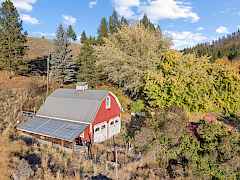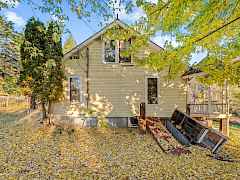 A one-of-a-kind property opportunity on 14.61 acres w/creek frontage awaits. This 2973 sq ft 4BR/4BA Victorian style home is full of charm and just needs the right buyer with vision to make it even better. The front covered porch harkens back to yester year with views of grape arbors, orchard, willows over the creek and abundant wildlife. Inside, the home features formal living and dining rooms centered around a custom fireplace. The full basement offers partially finished space, laundry, and room for future expansion. A wood furnace supplements the electric forced-air system for efficient, flexible heating. A spacious shop and multiple outbuildings include an upstairs studio apartment and a certified commercial kitchen/food-processing space complete with a walk-in cooler.