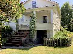 2 HOMES : Fantastic opportunity to live in one home and have a rental or guest home too. Beautifully updated 1930s home with stunning hardwood floors, primary bedroom & walk-in closet, updated bathroom with claw foot tub and shower, Door out to your own private deck to enjoy the peaceful setting. New appliances in the updated kitchen with pass through opening to the living room, gas log stove and French doors out to the pergola covered deck. Fenced garden area with shed and a separate greenhouse style shed. Year around pond with pump for watering and a creek that is spring fed. There is a French drain installed around the main house and an outside entry to the basement where the laundry is located and 2 cool storage rooms, Updated 1940 2-bedroom 1 bath ADU with its own fenced side yar
