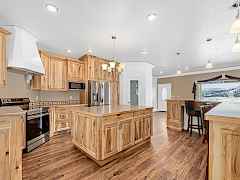 Take in beautiful views of the valley from this 3 bed, 2 bath home situated on 2.24 acres. The open floor plan is filled with natural light and features luxury vinyl flooring and crown molding throughout. The kitchen offers custom cabinetry, stainless steel appliances, a walk in pantry, and a large island with an additional breakfast bar. The spacious primary suite includes a custom built in closet, tiled walk in shower, and a spa style tub. Outdoor living is a highlight with a wrap around deck perfect for relaxing or entertaining. An attached 2 car garage adds convenience and storage. Located close to local amenities including 49 Degrees North Ski Hill, Chewelah Golf & Country Club, Mistequa Casino, and nearby lakes, this property offers both comfort and accessibility.