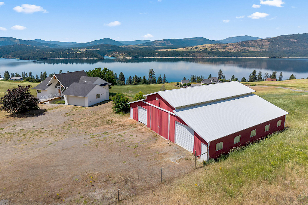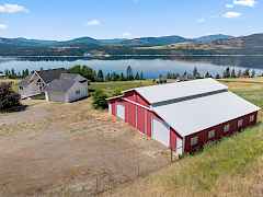 Beautiful and scenic panoramic water views of Lake Roosevelt! Enjoy this beautiful custom home situated in a private countryside setting. Large interior windows and vaulted ceilings in the living area offer expansive views of the water. Deck off of the back of the home is great for entertaining or relaxing. First floor features the main primary bedroom and bathroom as well as convenient first floor laundry. Lower level offers a large family space equipped with a pellet stove and a charming phone booth and well appointed utility room. Large shop adjacent to the home could be used for multi purpose shop/barn. Plenty of room for a garden and livestock. Two Federal boat launches for access to Lake Roosevelt within 8 miles.