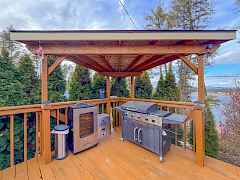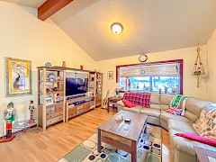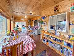 Your perfect home or summer retreat! 2bd/1bth single level house on 2.98 acres, w/ small piece of Jumpoff Joe Lake frontage and close to the public boat launch! Home boasts vaulted ceilings throughout the living area, nice sized primary bedroom with dbl closets, and updated kitchen that leads to your oversized sunroom with expansive windows looking out towards the lake! Bluetooth projector screen and surround sound system for your watching experience. Outside you have a large deck that is perfect for entertaining w/ covered patio & bbq areas, great views, free standing hot tub, and a private setting. Find plenty of room for all your toys! Metal 12x40' carport, framed 22x40' RV storage, 12x24' Heated Workshop, and another 10x24' storage shed! Develop the lake access for further enjoyment!