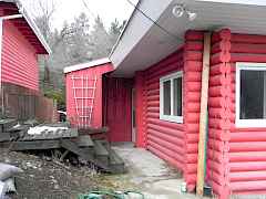 Wood, log sidingFlat roof