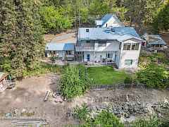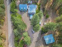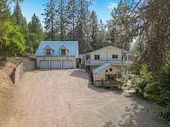 Charming retreat with stunning Lake Roosevelt views and easy access to a public boat launch. Nestled on 2.5 acres, this enchanting 3-bed, 3-bath home offers an idyllic blend of comfort and adventure. From the moment you arrive, you'll be captivated by the park-like landscape, creating a private playground. Enjoy the second-story covered decks, where sweeping water views invite you to unwind with morning coffee or host sunset gatherings. Designed for privacy and versatility, much of the land is fenced for pets or to keep wildlife out as needed. A guest house with a 3/4 bath awaits, plus two additional guest quarters. Additionally, two hobby sheds, a huge shop, as well as an oversized 3 car garage await your projects, creative pursuits and storage.