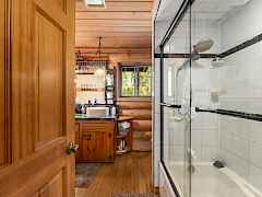 This beautiful home sits amongst a variety of tree species which creates a magical woodland retreat. Enjoy the sights and sounds of beautiful Grouse Creek as it meanders through the property. The large, custom built log cabin offers lots of space for large groups, featuring a third floor, full loft with room for four queen sized beds. The second floor features two bedrooms, an office, bathroom and laundry room. A beautiful, two bedroom guest house located above the garage, brings the total bedroom count on the property to five. Back inside, the main floor offers an open space living room, informal dining room and a dream (Chef's) kitchen with walk in pantry. The basement features a roomy guest suite featuring a bedroom/tv sitting room. Lots of cozy space in this homestead to enjo