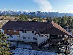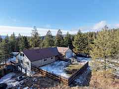 Spacious 3,956 sq ft 4-bed, 4-bath home on 13+ acres with income potential! Includes separate 3-bed, 2-bath ADU and two large workshops, all set on over 13 acres of usable land. This property is ideal for multi-generational living or rental income. Two-story layout features main living on the upper level with an open-concept kitchen, granite counters and a large island that flows into the dining area. The living room showcases a wood stove with local granite chimney and opens to a covered deck with breathtaking views—perfect for relaxing or entertaining. The covered back deck overlooks a fenced yard with mature fruit trees. Updated primary suite with en-suite bath and large walk-in closet. Lower level includes a laundry and large pantry, attached garage, and two apartments.