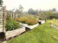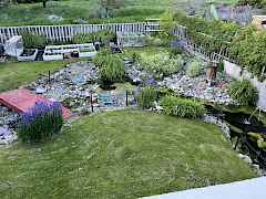 Landscaped, fenced, garden space, level, sloped