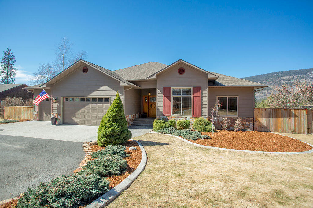 Immaculate turn key 3 bedroom, 2 bath one level home with views of Lake Roosevelt and the surrounding mountains. Open concept floor plan with10 foot ceilings with an amazing kitchen with granite countertop and stainless steel appliances. Beautiful rock fireplace in the formal living room, family room and dining room all in the view of the kitchen, so you entertainers don't miss out on any of the fun. Primary bedroom with a dream walkin closet, custom windows and solid wood doors throughout the entire home. Oversized 3 cars, fully fenced backyard with sprinkler system, an amazing new deck on north and west side of home, concrete curbing, paved driveway and so much more to this home that you'll just need to see to believe. Property goes all the way down to Peachcrest, so if you wanted to
